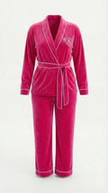 Plush velvet in rich hues, finished with detailed piping for a modern look. Designed with an adjustable belt, this set moves with your body and highlights your curves without trying too hard. Relaxed, confident, and undeniably sexy. Zuri Velvet Lounge Set is made for lounging, hosting, or stepping out feeling effortless and put together.